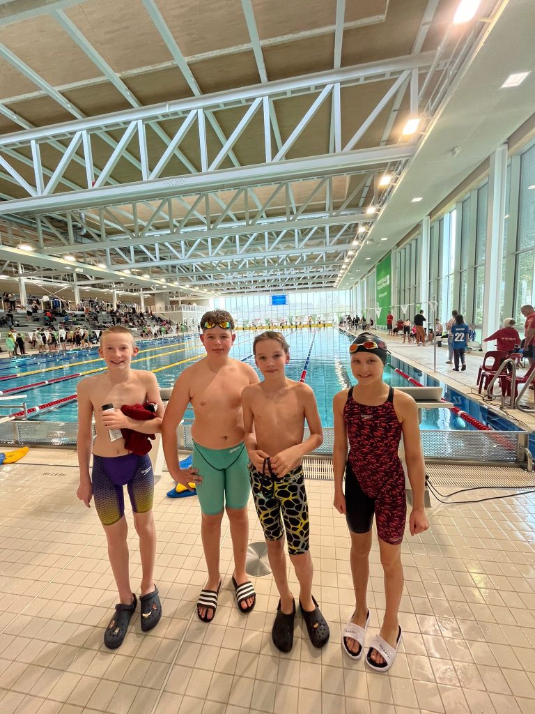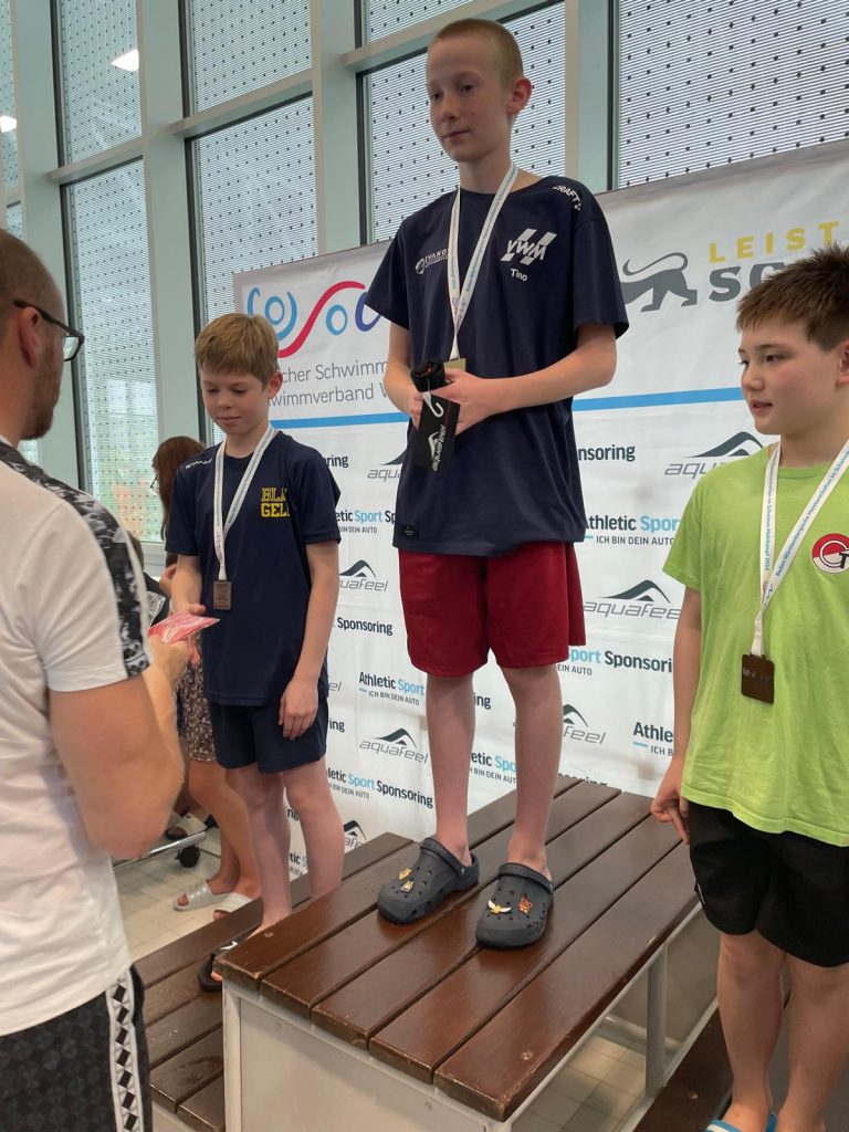 Melissa, Kyrylo und Danil traten im Kraul-Mehrkampf an, während Valentin im Delfin-Mehrkampf sein Können zeigte.