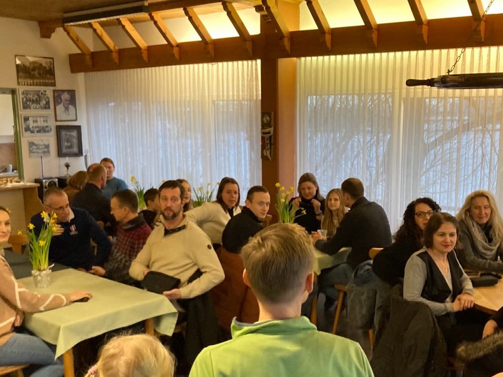 Für alle war ein kleines Buffett mit Knusperbackwaren angerichtet. Der kalten Witterung entsprechend gab für die Erwachsenen Glühwein, die Jugendlichen Kinderpunsch und alkoholfreie Erfrischungsgetränke und als besonderes Schmankerl reichlich „Mohrenköpfe“ des in der Kurpfalz bestens bekannten Schokoladenhaus Oberfeld aus Lampertheim.