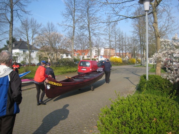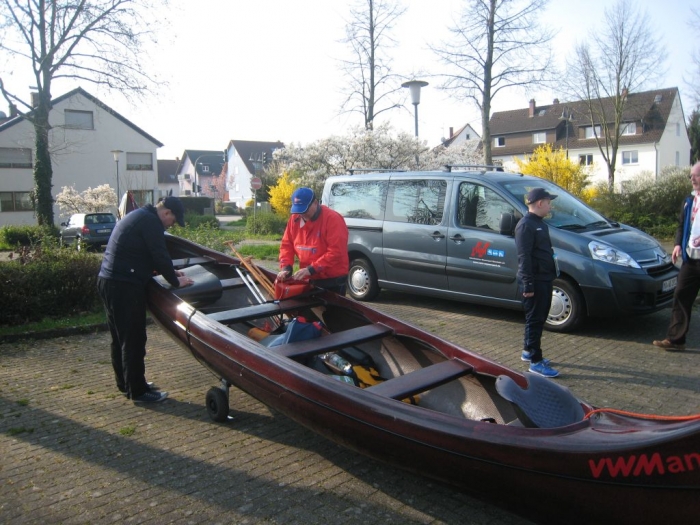 Am Sonntag 10. April 2016 trafen sich traditionell die Wassersportler des Kanusportkreises Mannheim beim Turnverein Edingen, um die offizielle Saison auf dem Neckar zu eröffnen. Auch unsere kleine VWM-Paddeltruppe war mit Slawa, Arthur, Eckehard, Gerd und PP dabei. Damit als Verein wahrgenommen, hatten wir unseren „LUZZEBUGGL“ (Mannschaftskanadier Gatz-Cree), früh morgens kurzerhand auf unseren Vereinsbus geschnallt und fuhren nach Edingen. Da wir recht früh vor Ort waren, konnten wir gemütlich unseren „LUZZEBUGGL“ zu Wasser lassen und uns an den vom Gastverein TV-Edingen gesponserten Laugen-Hefeteilchen sowie Heiß-und Kaltgetränken gütlich tun. Für dieses zweite Frühstück an dieser Stelle herzlichen Dank.