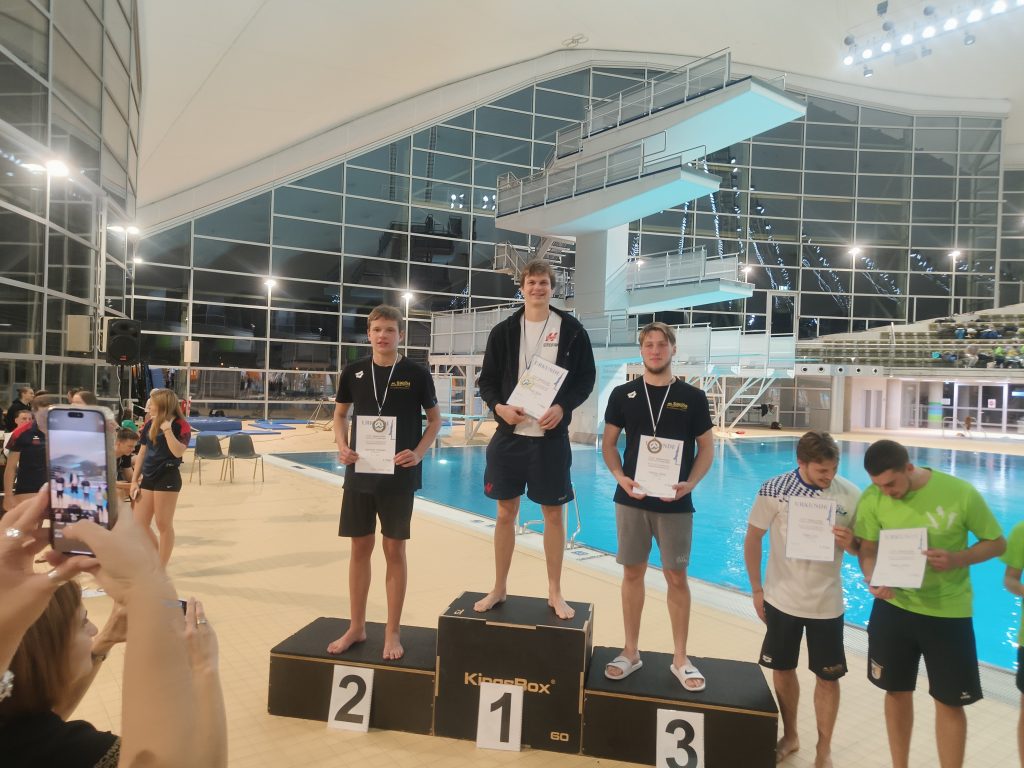 Für die größte Überraschung sorgte Stefan. In der offenen Klasse – unter anderem mit französischen Olympioniken – gewann er mit einer schwierigen Serie aus allen sechs Sprunggruppen die Goldmedaille vom Turm. Als einziger Springer zeigte er alle Sprünge vom 10-Meter-Turm.
