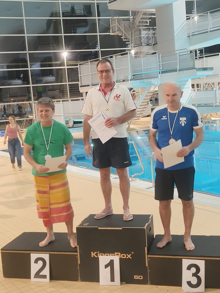 Simon (AK 50), der trotz geringer Trainingszeit als Trainer viel Verantwortung trägt, wurde vom 1-Meter-Brett Zweiter. Vom Turm jedoch gewann er überraschend Gold und zeigte damit seine Klasse. Vom 3-Meter-Brett sicherte er sich zusätzlich Silber.