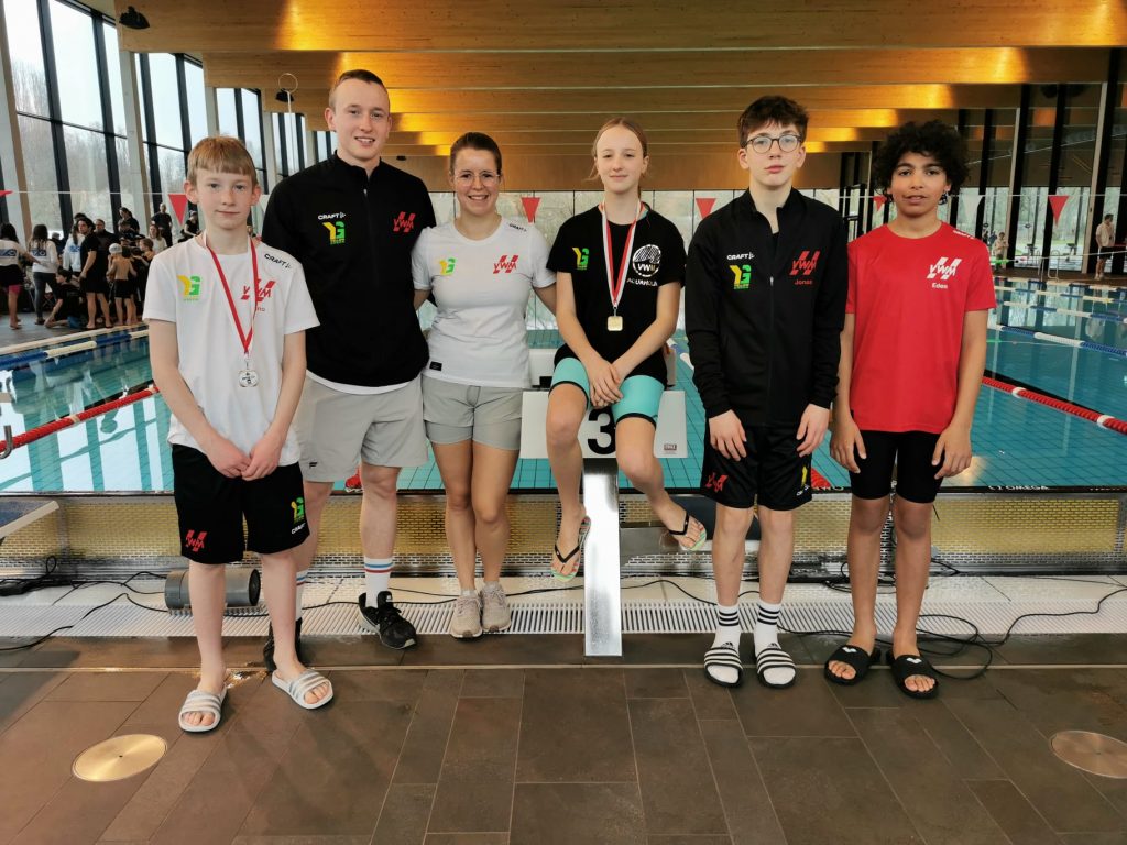 Am 04. Und 05. März machten wir uns auf den Weg nach Darmstadt. Das neu umgebaute Nordbad veranstaltete einen 50m Bahn Wettkampf mit insgesamt 50 Vereinen und über 2000 Starts. Wir gingen mit 13 Schwimmern an den Start um unseren aktuellen Stand auf der 50m Bahn zu testen und eventuell auch schon die ein oder andere Pflichtzeit für die Süddeutschen Meisterschaften zu erreichen. Der Wettkampf war in zwei Abschnitte geteilt, so schwammen morgens die jüngeren Jahrgänge (2010-2015) und nachmittags die älteren. Für uns gingen vormittags Nell, Melissa, Edem, Tino und Jonas an den Start. Alle konnten mit tollen Zeiten und vielen Medaillen glänzen. Zusätzlich schaffte es Nell in den 50m und 100m Freistil die Pflichtzeit für die Süddeutschen Meisterschaften zu unterbieten, was ein toller Erfolg ist.