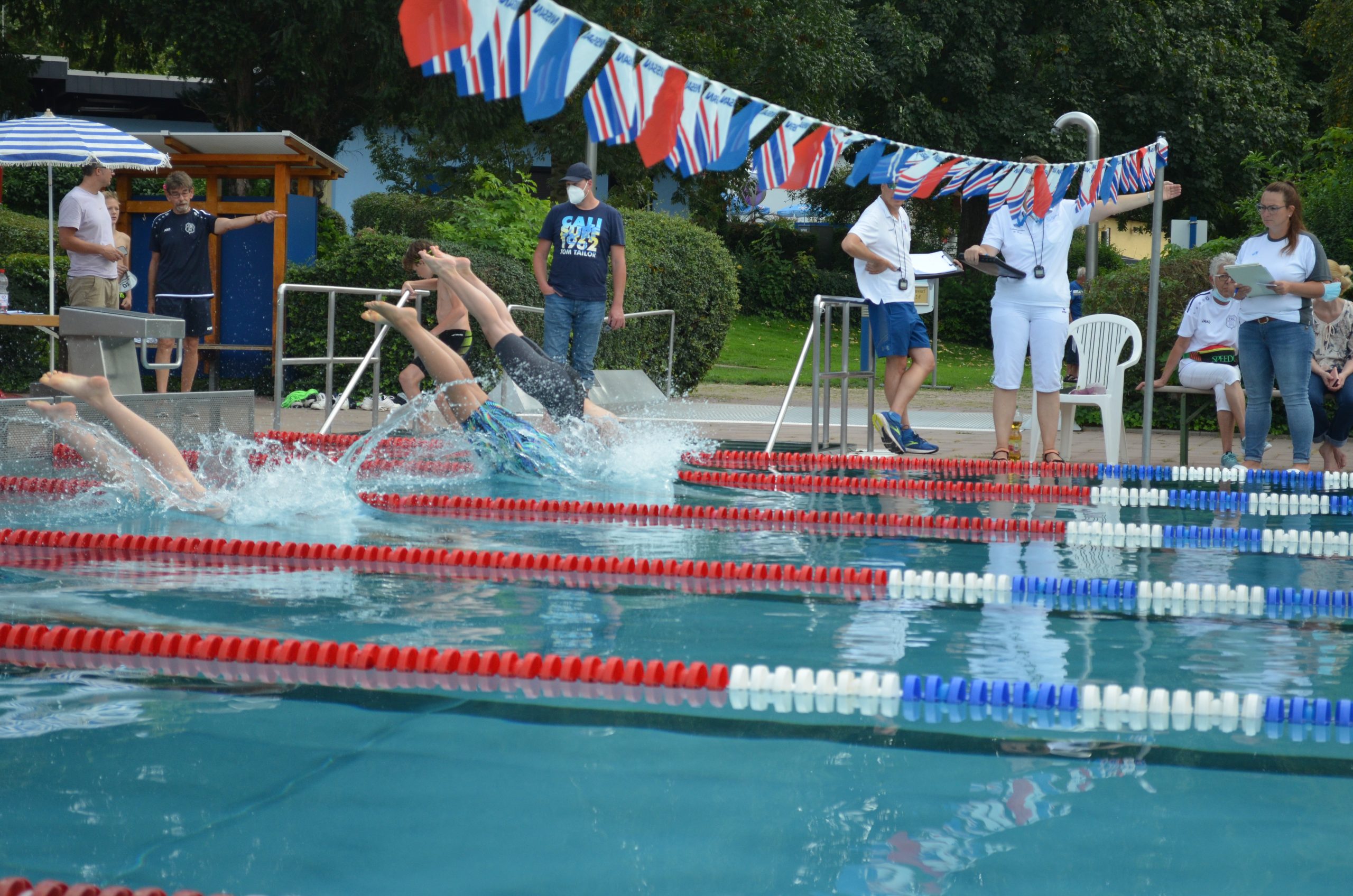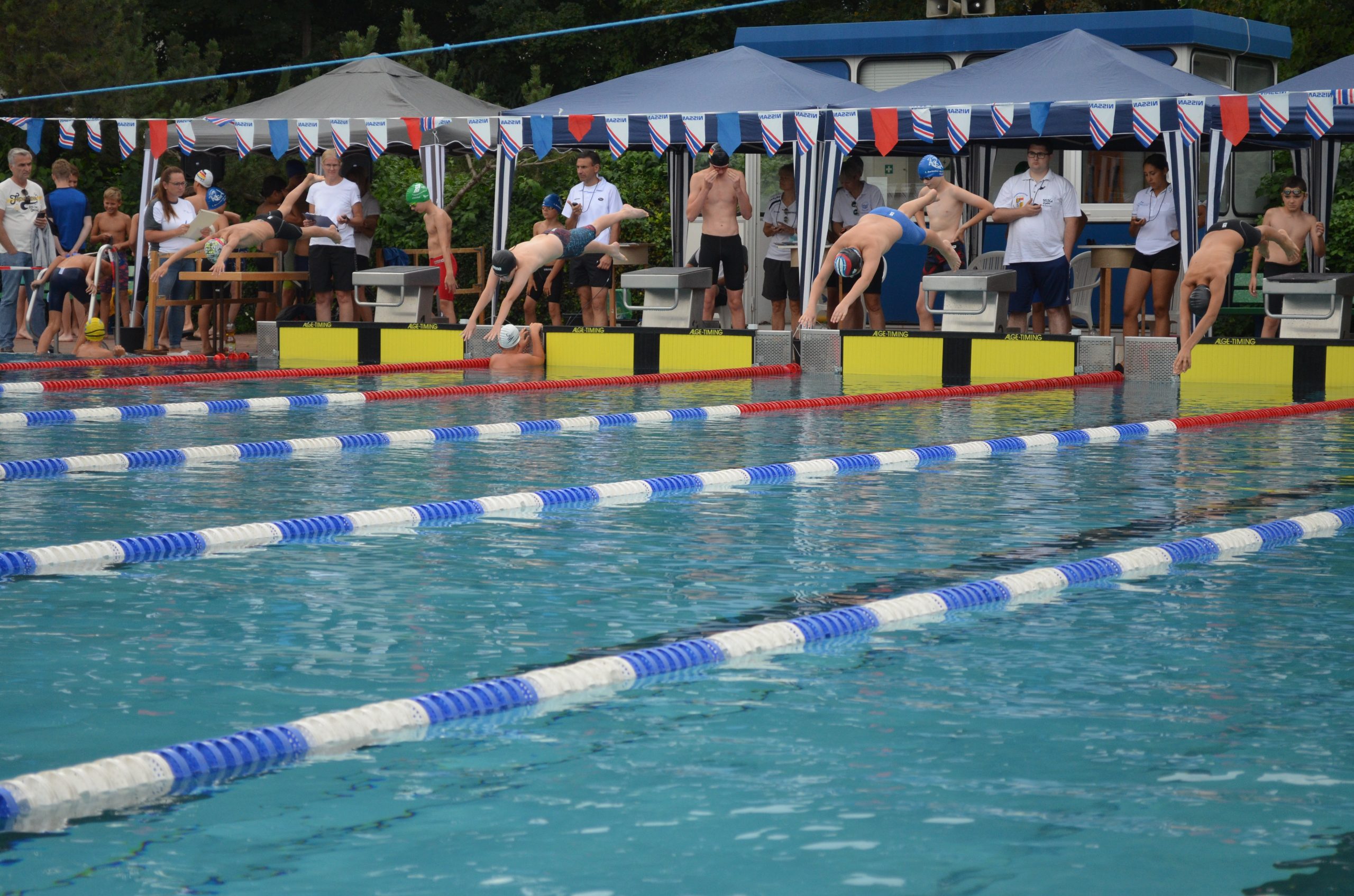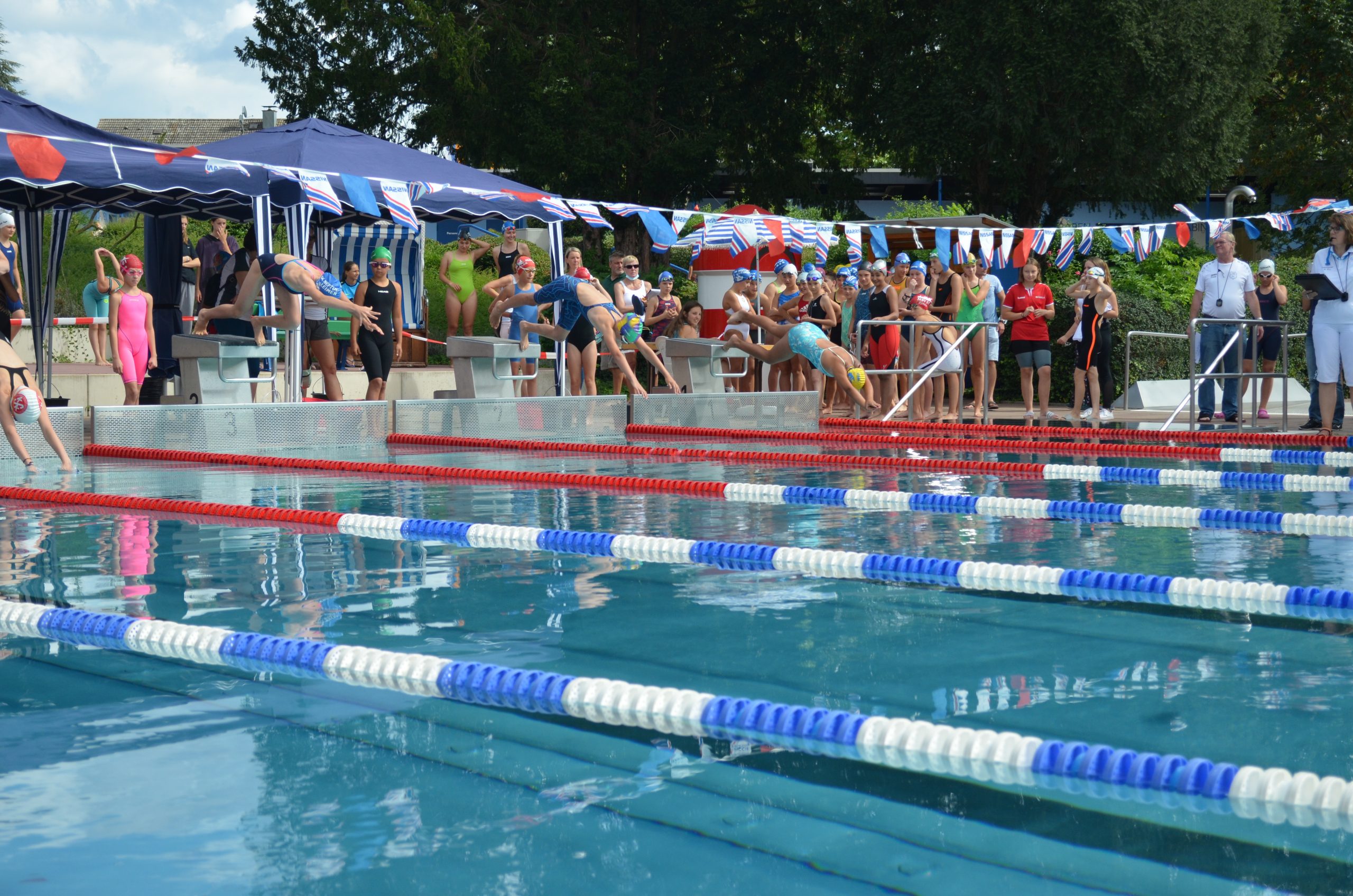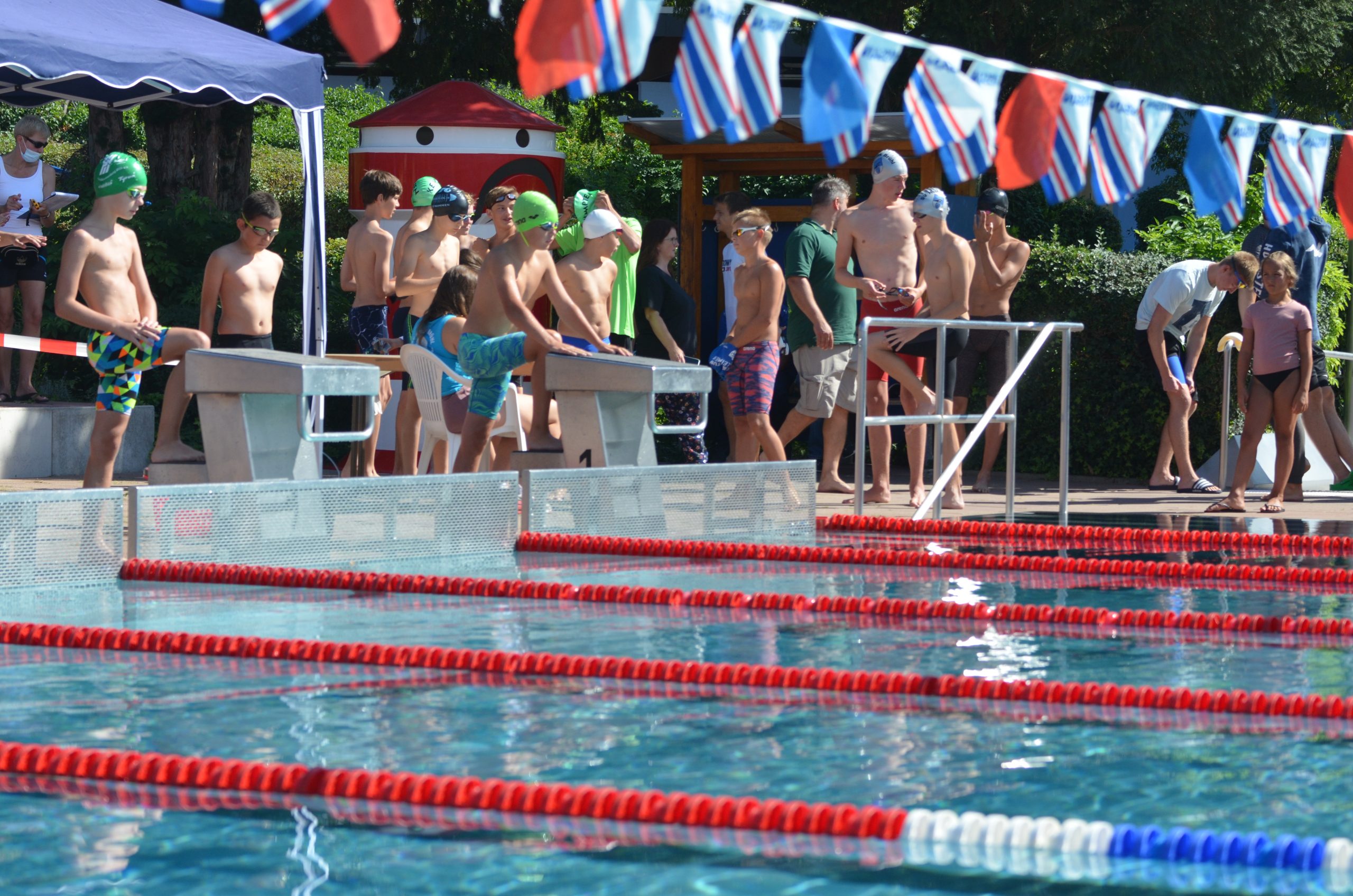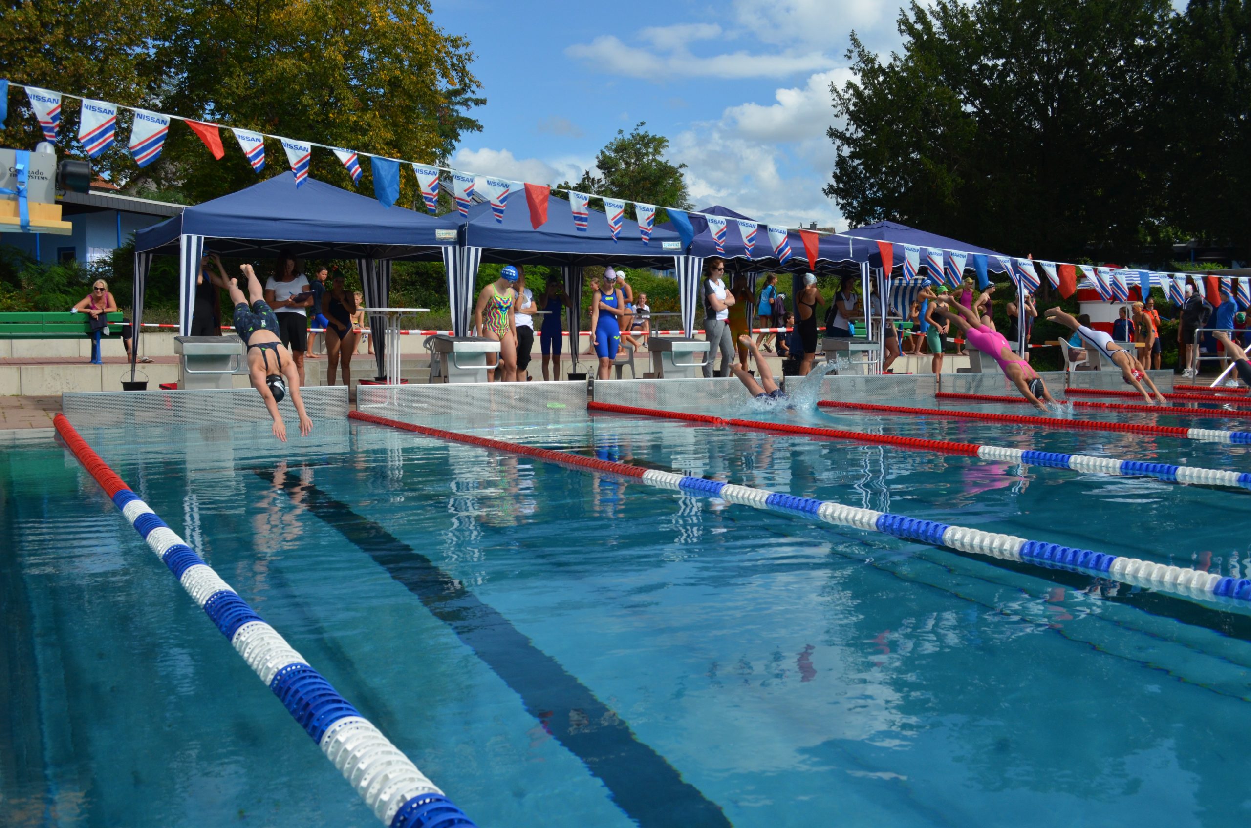 Endlich war es wieder soweit und wir hatten unseren ersten Wettkampf seit nunmehr über einem Jahr Pause. Am 11. und 12. September fand in Brühl wieder das Internationale Schwimmfest statt, welches normalerweise immer im Mai stattfindet aber Corona bedingt verschoben wurde. Sogar das Wetter hat sich mitverschoben, so war neben dem üblichen Sonnenschein auch wieder Regen am ersten Wettkampftag angesagt. Es fehlte nur noch das Gewitter und wir hätten identische Bedingungen zu den Jahren davor gehabt. Am Wettkampf nahmen 18 Vereine mit insgesamt 339 Schwimmern teil.