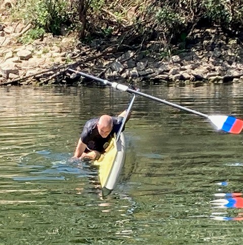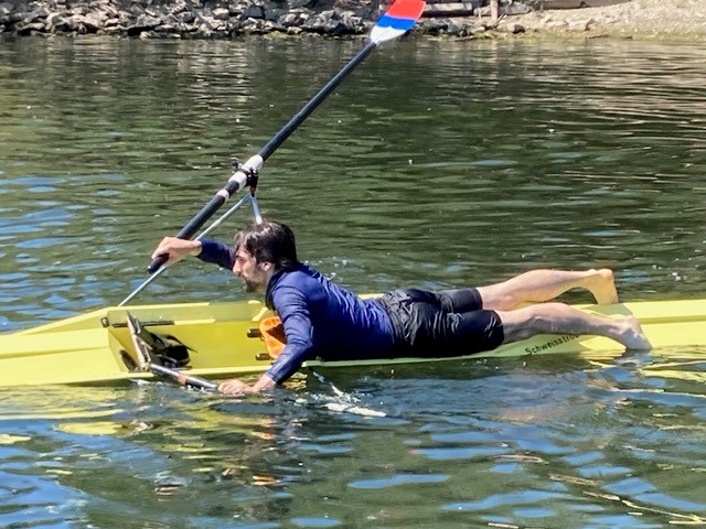 Parallel dazu fanden die Übungen im Einer statt. Zumindest das Kentern ist einfach. Nur die Skulls loslassen, den Rest macht die Schwerkraft.
