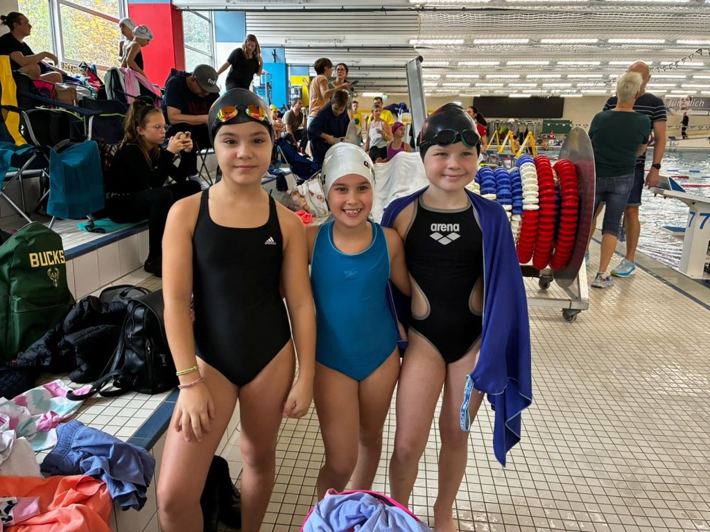 Dieses Mal war unsere Trainerin Selina mit vier Athletinnen am Start: Irini (2017), Nefeli (2016), Isi (2016) und Dariia (2016). Die fantastischen vier Mädels haben alles gegeben, sich unter anderem zum ersten Mal an die Delfinlage gewagt und großartig performt. Mit tollen Bestzeiten, mehreren Medaillen und jeder Menge neuer Erfahrung im Gepäck erlebten sie einen wunderbaren Vormittag.