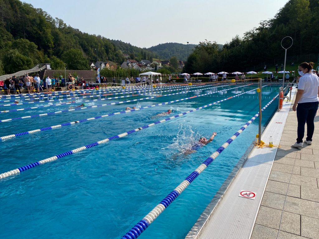 Aufgrund der Covid-19 Umstände fand all die Zeit kein einziger Wettkampf in unserer Region statt. So waren wir alle sehr froh darüber, dass sich im Freibad Weinheim die Gelegenheit anbot endlich wieder an einem Wettkampf teilnehmen zu können. Natürlich fand der Wettkampf mit Abstimmung des örtlichen Gesundheitsamtes statt und hatte deshalb entsprechende Auflagen. So hatte jeder Verein vorab seinen zugewiesenen Platz und beim Einschwimmen wurde auf strikte Trennung der Vereine geachtet. Auf jeder Bahn herrschte Einbahnverkehr, um stets den Abstand zwischen den Schwimmern zu wahren und natürlich war der Mundschutz Pflicht. Des Weiteren wurden auf dem Wettkampf nur die 50m Strecken geschwommen, sozusagen ein reiner Sprinterwettkampf.