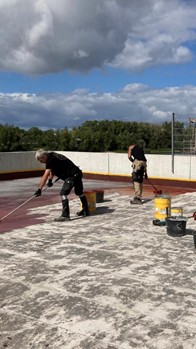 Dann war erst einmal Schluss, denn es begann zu Regnen. Unglücklicherweise war der Anschluss zum zentralen Ablaufrohr noch nicht dicht, so dass uns Wasser in den darunterliegenden Jugendraum lief und die Decke nun renoviert werden muss. Das hat unser Ehrenvorsitzender Günter Biehal bereits in Angriff genommen und dabei eine Optimierung des Deckenanschlusses an die Fensterfront eingeplant.