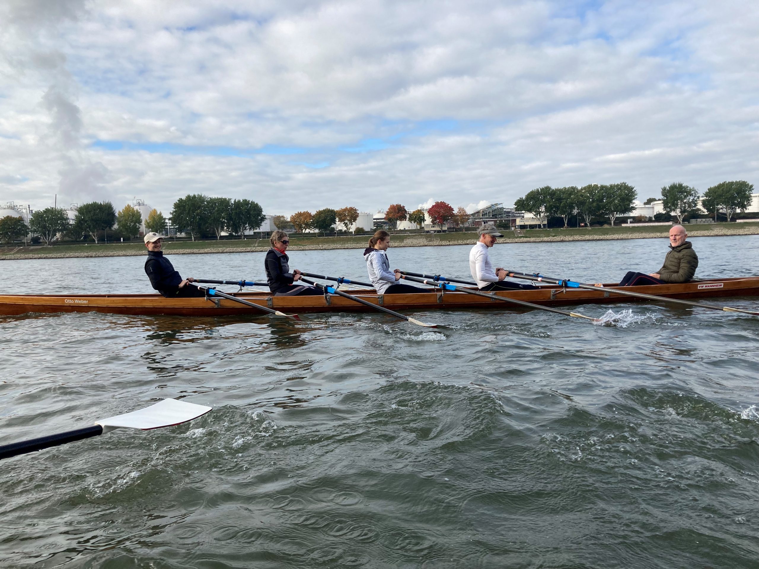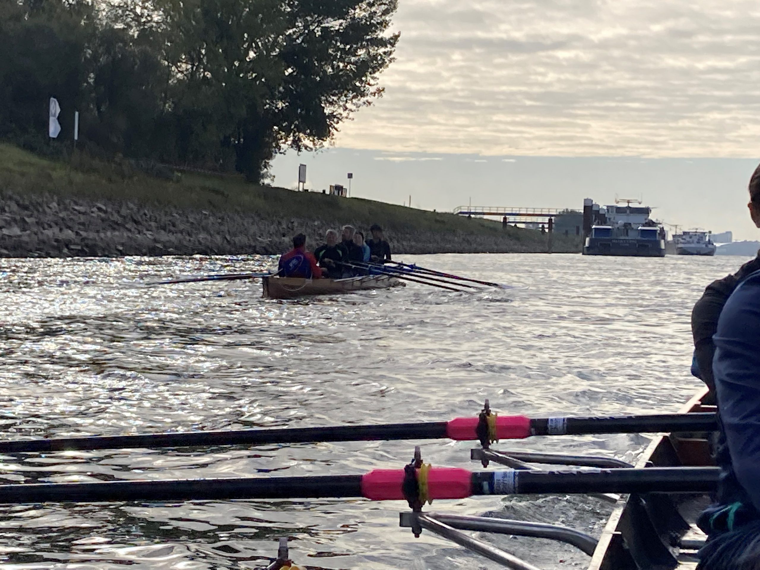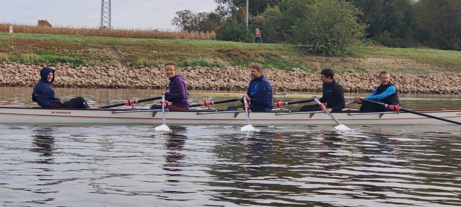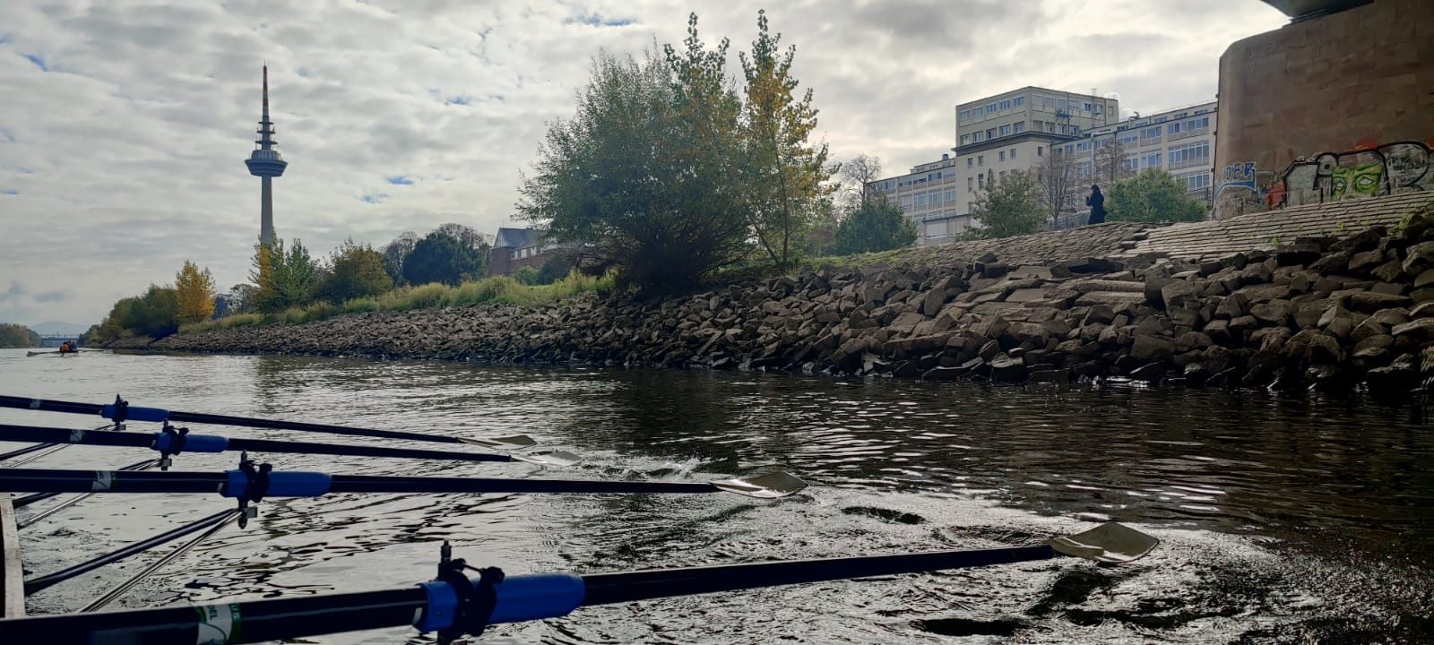 An einem der letzten schönen Herbsttage ruderten wir die erste Hälfte unserer Strecke bis zum Fernmeldeturm. Während die Ruderer es mollig warm auf der Strecke hatten, bibberten die Steuermänner umso mehr. Dies veranlasste manch einen Vierer auf dem Rückweg den Steuerplatz gegen einen Rudererplatz zu tauschen. Nach einer kleinen Pause ging es zurück zu unserem Steg . Alle waren sich einig, der Ausflug auf den Rhein und Neckar war schön, doch auf unserem Heimatgewässer, dem Altrhein rudern wir am liebsten 😊 .