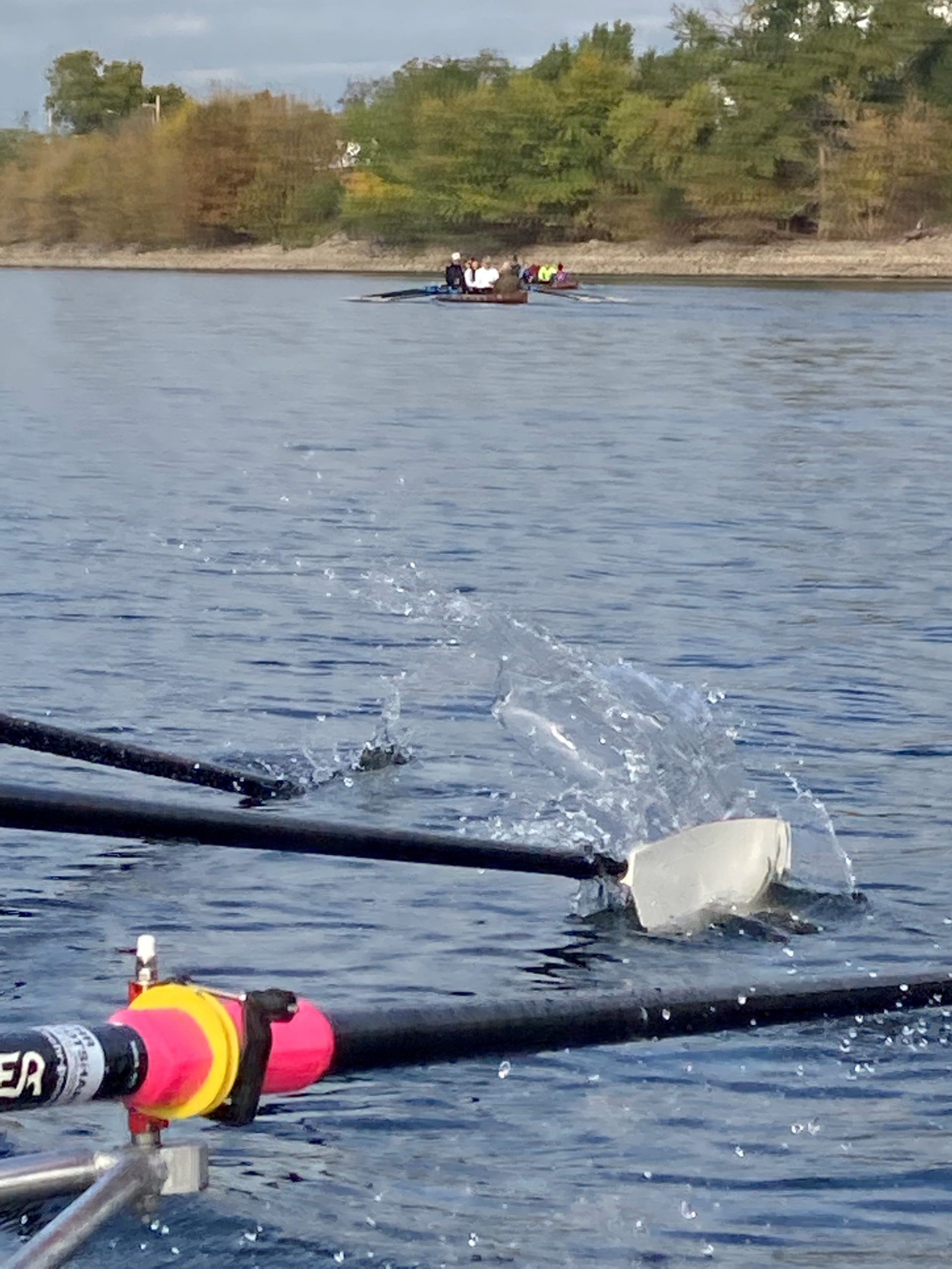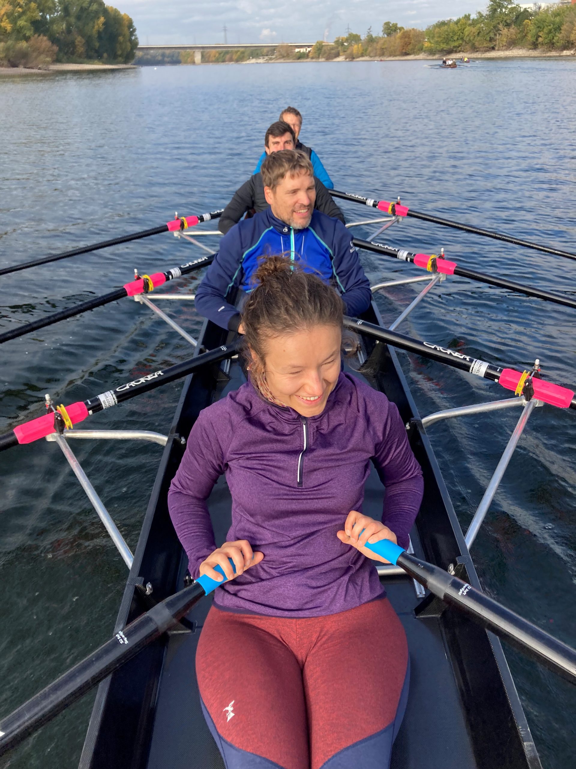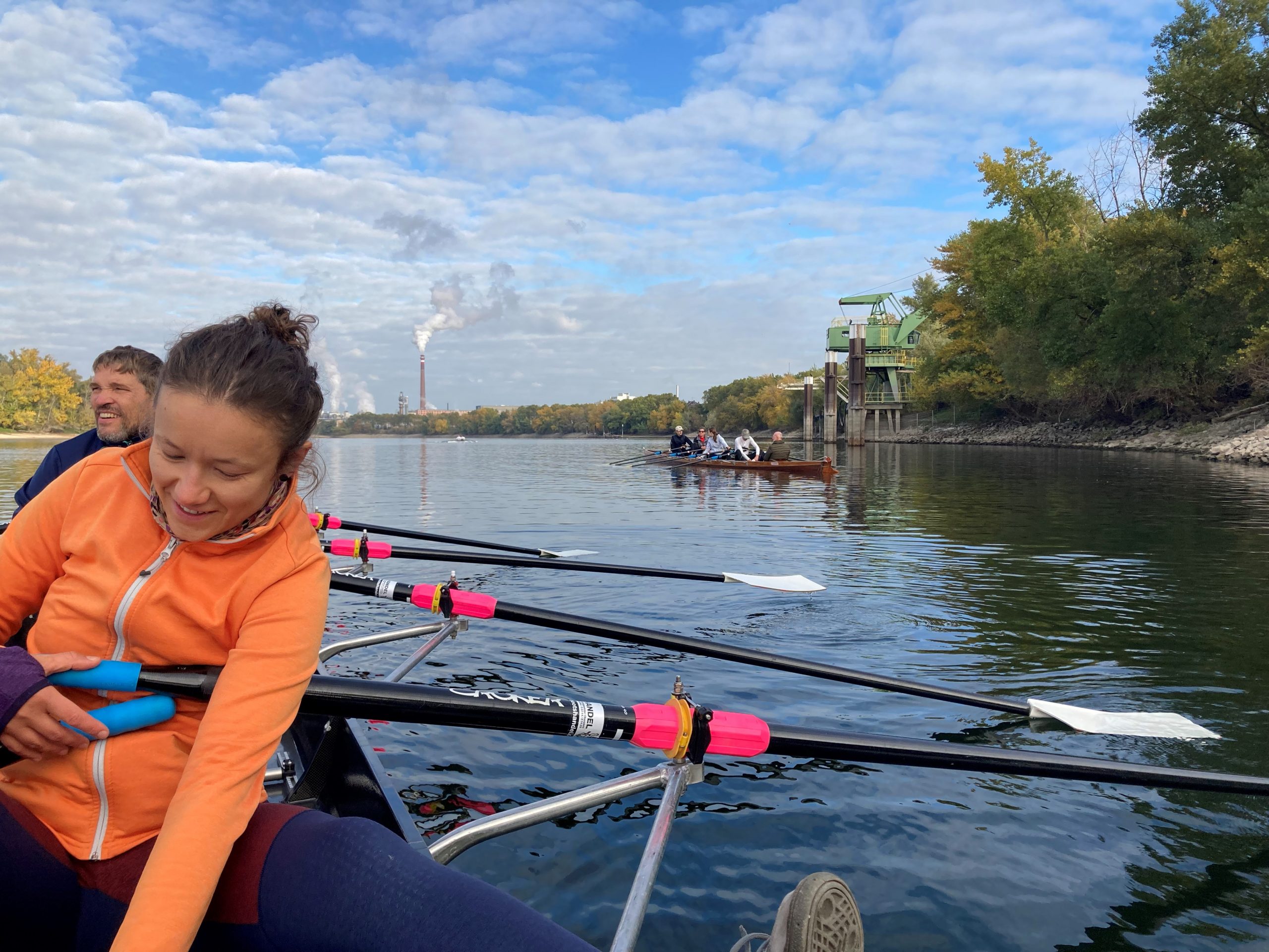 An einem der letzten schönen Herbsttage ruderten wir die erste Hälfte unserer Strecke bis zum Fernmeldeturm. Während die Ruderer es mollig warm auf der Strecke hatten, bibberten die Steuermänner umso mehr. Dies veranlasste manch einen Vierer auf dem Rückweg den Steuerplatz gegen einen Rudererplatz zu tauschen. Nach einer kleinen Pause ging es zurück zu unserem Steg . Alle waren sich einig, der Ausflug auf den Rhein und Neckar war schön, doch auf unserem Heimatgewässer, dem Altrhein rudern wir am liebsten 😊 .